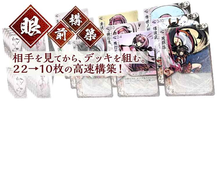 デッキの枚数が少ないため、わずか1枚の差が大きな変化を生みます。 自分の強みを生かすべきか、それとも相手に対策するべきか、意志を決定するのはあなたです。